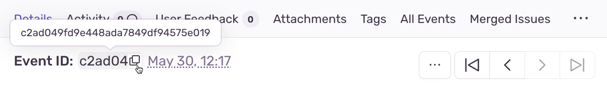Image highlighting where to find the ID of an event on Sentry