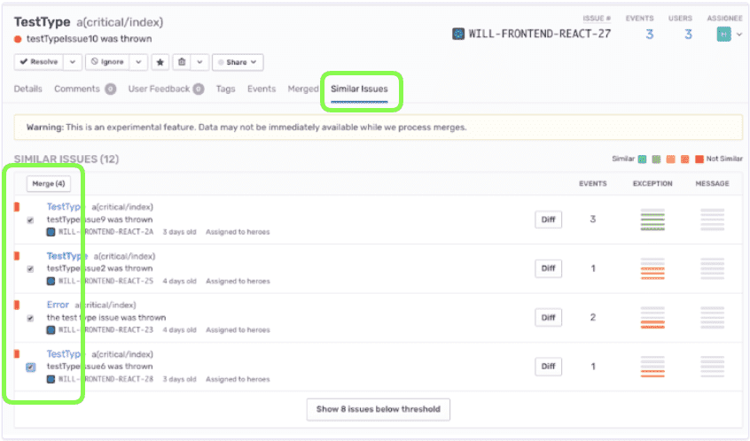 Merging Similar Issues: This allows already-existing issues to be merged together. No settings or configuration are required to do this.